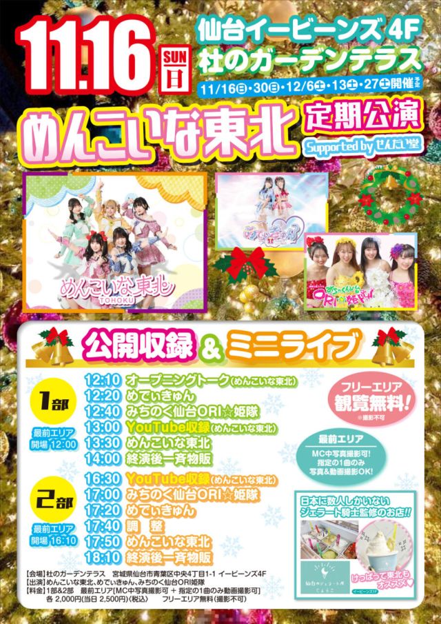 いかがお過ごしですか、nittaです。JR仙台駅西口のイービーンズ4階杜のガーデンテラスで、『めんこいな東北 定期公演 -supported by せんだい堂…
