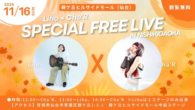 いかがお過ごしですか、nittaです。仙台市青葉区の錦ケ丘ヒルサイドモールで、『Liho × Cha’R ~Special Free Live~』を、2025…