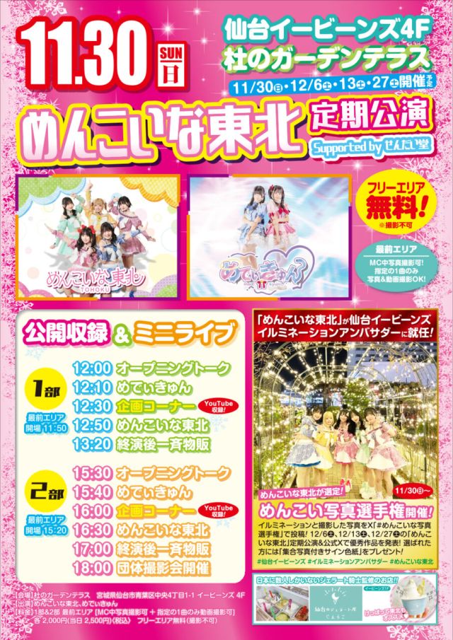 いかがお過ごしですか、nittaです。JR仙台駅西口のイービーンズ・4階杜のガーデンテラスで、『めんこいな東北定期公演 Supported by せんだい堂』…