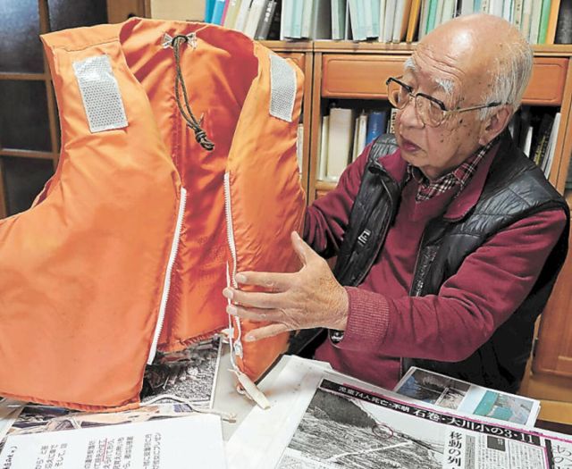 宮城県亘理町で東日本大震災の語り部活動に取り組む飯沼晴男さん(85)は、県外からの来訪者に必ず伝えていることがある。津波から命を守るライフジャケット(救命胴…