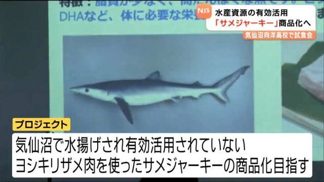 サメの水揚げ日本一の宮城県気仙沼市で水産資源の有効活用を目指した取り組みです。気仙沼で水揚げされたサメの肉を使った「サメジャーキー」の試食会が気仙沼市の高校で…