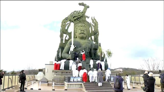 仙台市青葉区の成田山仙台分院でも正月を迎える準備が進められました。12月18日は読経した後、高さ16.5メートル重さ25トンの不動明王大仏のすす払いが行われま…