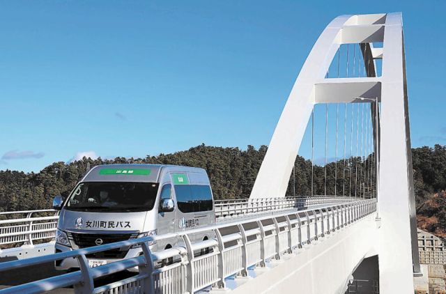 町民バスは、今年3月末に運行を開始した。1日3往復で、集会所などの島内各地と、町地域医療センターやスーパーなど本土側の町中心部をつなぐ。平均利用者は4~11…
