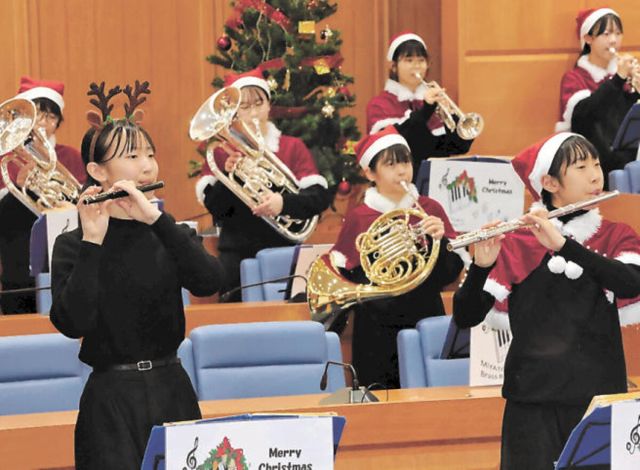 ◇…宮城県大和町議会の議場で25日、同町の宮床中吹奏楽部員27人がクリスマスコンサートを開いた。 ◇…サンタクロースやトナカイの衣装で華やかに登場した部員た…