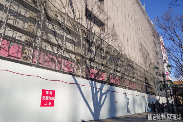 EDEN跡地に新しい階段が建設され、さくら野百貨店解体工事では足場の取り付けが進んでいました。