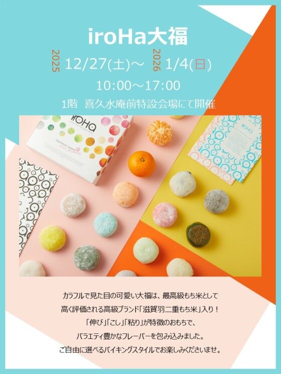 イオンタウン仙台泉大沢の喜久水庵前特設会場で、iroHa大福が販売されるみたいです!こういう和と色とりどりのオシャレな感じのコンセプトは好みです。見た目の可愛…