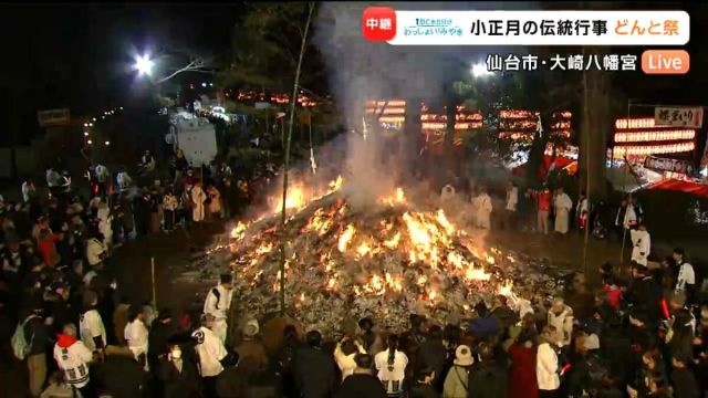 宮城県内各地の神社では14日、小正月の伝統行事「どんと祭」が行われ、参拝した人たちが今年1年の無病息災などを祈願しました。仙台市青葉区の大崎八幡宮では14日夕…