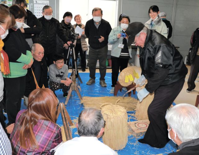 稲わらを使って昔ながらの米俵の作り方を学ぶ見学体験会が1月31日、…