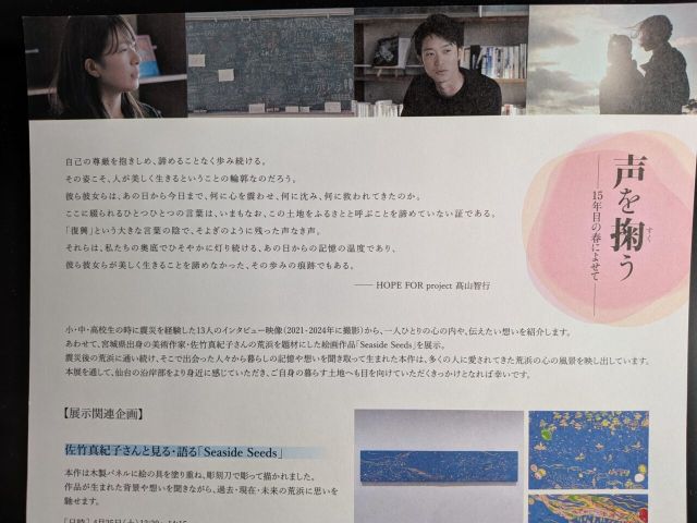 せんだい3.11メモリアル交流館にて、2026年3月1日(日)から5月31日(日)まで企画展「声を掬う~15年目の春によせて~」が開催されます。 開催会場:せ…