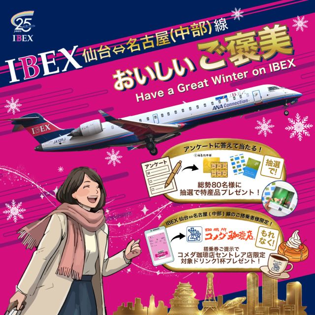 どーもー、仙台つーしんのせんだーいです!こちらはPR記事となっていますよ~「気になってたのに、もう2月後半…!」という方へ!IBEXの「仙台‐名古屋(中部)線…