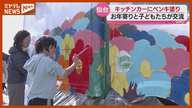 仙台市の福祉施設では、お年寄りと地域の子どもたちがキッチンカーの塗装を行うワークショップが、23日 行われました。