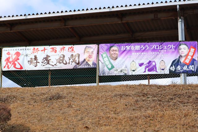 栗原市の瀬峰地区にある総合運動公園に行ったら「時疾風関」の応援懸垂幕があった!