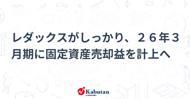 レダックス<7602>がしっかり。18日の取引終了後に、保有する仙台市泉区の土地を親会社レダグループホールディングスへ売却したのに伴い、26年3月期に固定資…