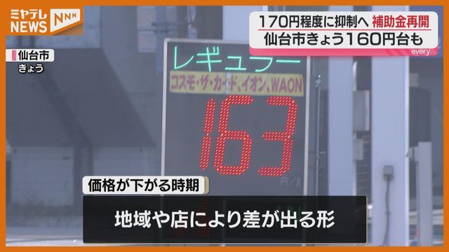 中東情勢の悪化でガソリン価格が急騰したことを受け、政府は全国の平均価格が170円程度に抑えられるよう、19日から補助を再開しました。 宮城県内では、価格を下…