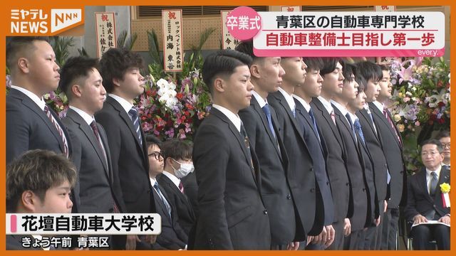 自動車整備士を目指す仙台市の自動車専門学校で卒業式が行われ、卒業生が新たな一歩を踏み出しました。