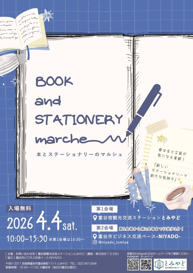 とみやどで、また本と文房具のマルシェが開催されるみたいですよ!春になると新しいノートとかペンを揃えたくなるし、この時期の恒例イベントになってきている感じがして…