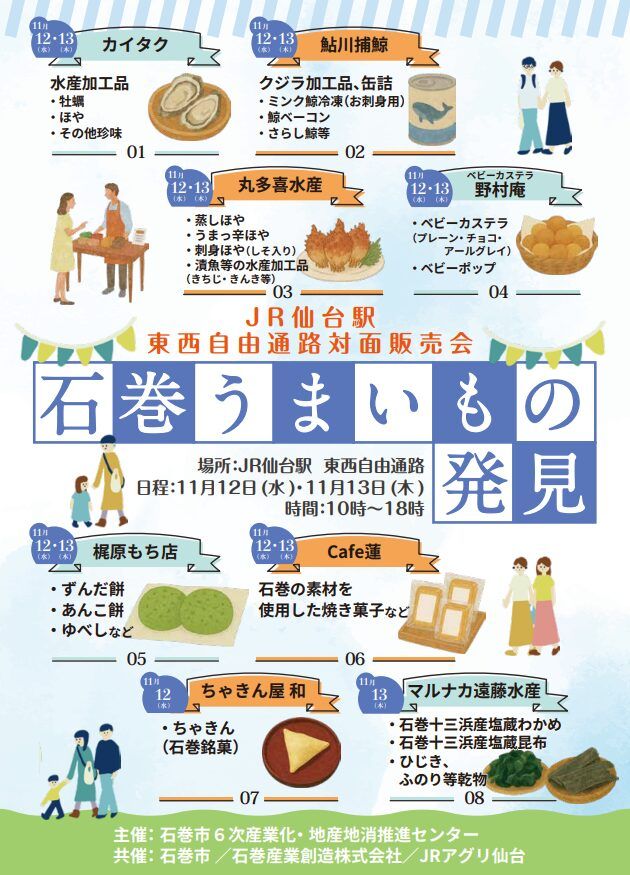 いかがお過ごしですか、nittaです。JR仙台駅2階・杜の陽だまりガレリア(仙台駅東西自由通路)で、対面販売会『石巻うまいもの発見』を、2025年11月12日…