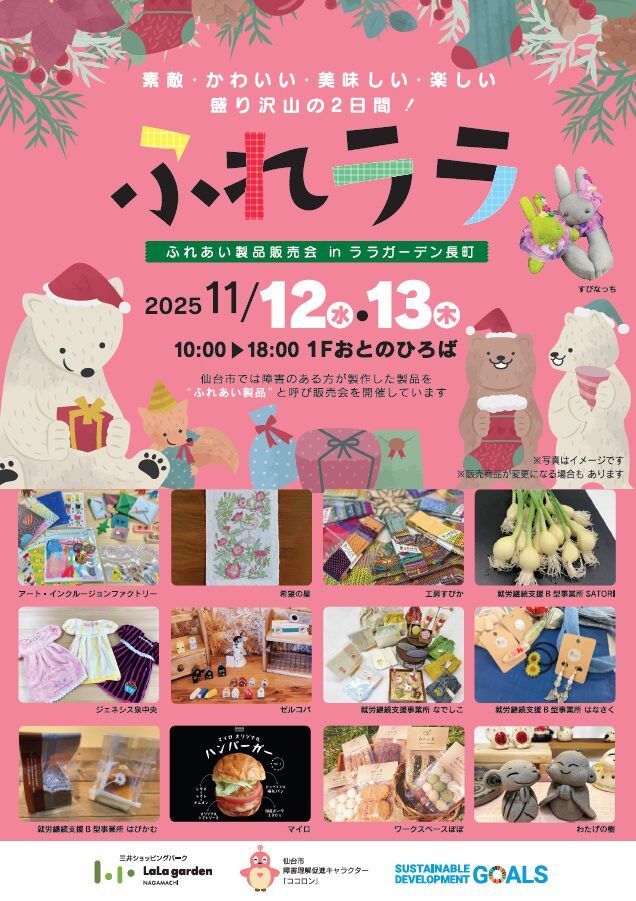 いかがお過ごしですか、nittaです。仙台市太白区長町のララガーデン長町1階おとのひろばで、ふれあい製品販売会『ふれララ』を、2025年11月12日(水)、1…
