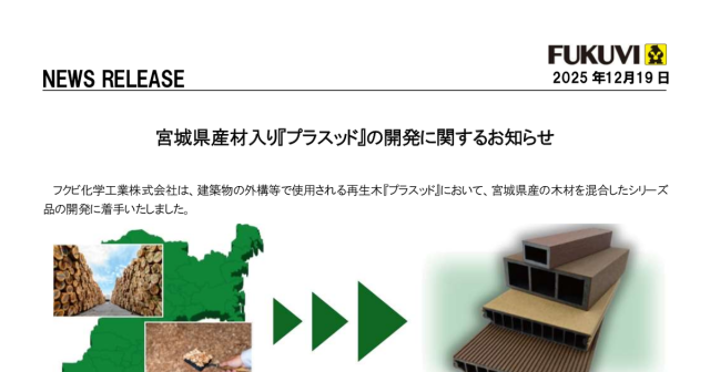 2025年12月19日 フクビ化学工業[7871]の開示資料「宮城県産材入り『プラスッド』の開発に関するお知らせ」 が閲覧できます。資料はPDFでダウンロード…
