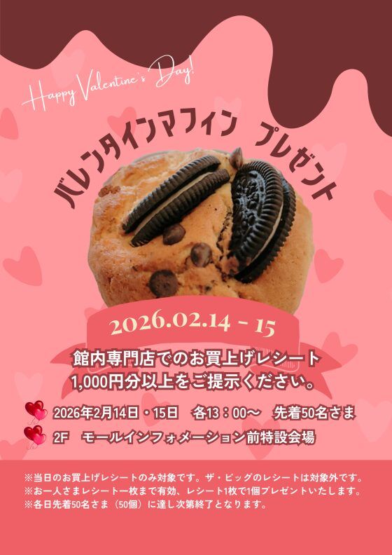 大沢イオンで、今年もバレンタインのちょっと嬉しい企画があるみたいです。2月14日(土)・15日(日)の2日間、イオンタウン仙台泉大沢からバレンタインマフィンの…