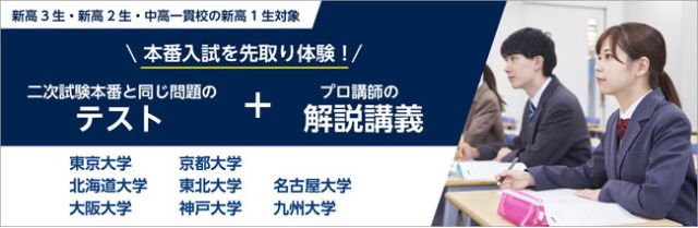 学校法人 河合塾催事案内/新高1生・保護者対象学校法人河合塾は、2026年3月、新高3生・新高2生・中高一貫校の新高1生を対象に、「難関国立大学入試本番チャレ…