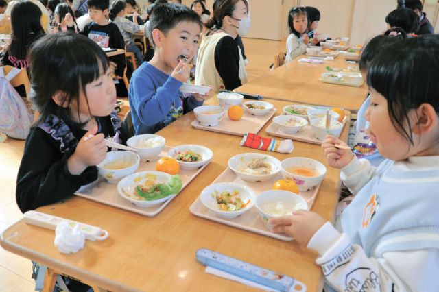栗原市は13日、合併20周年を記念し、市内の保育所や幼稚園など16施設で地元の特産品を使った特別給食約1580食を提供した。 献立は、栗原市のブランド豚「志…