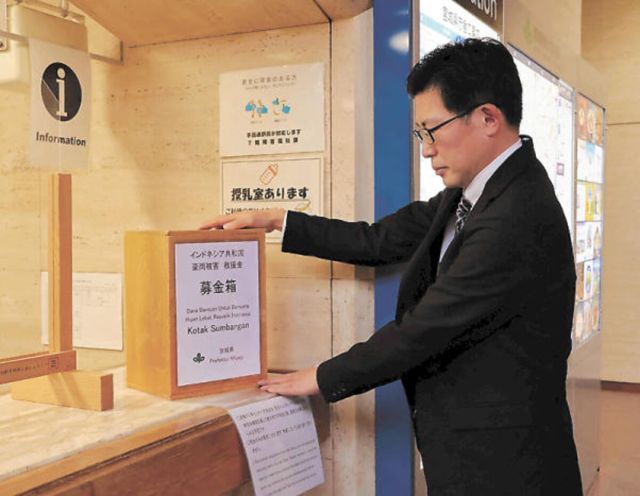 県は、東南アジアで11月下旬に発生した豪雨で大きな被害を受けたインドネシアを支援しようと、県庁に募金箱を設置した。 募金箱は平日の午前9時~午後4時半、県庁…