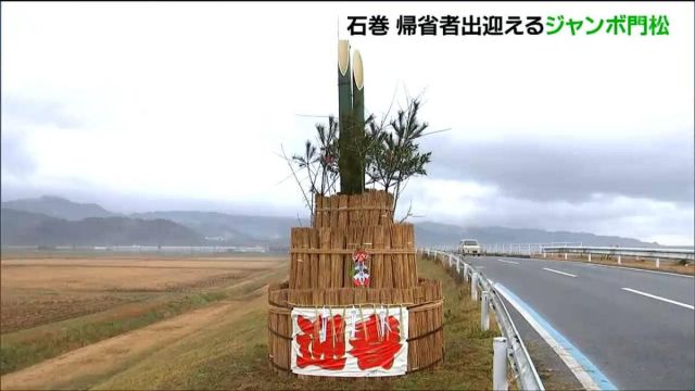 年の瀬を迎え、宮城県石巻市の北上地区では、年末年始に帰省した人や観光客などを出迎えるジャンボサイズの門松が、12月25日設置されました。門松が設置されたのは、…