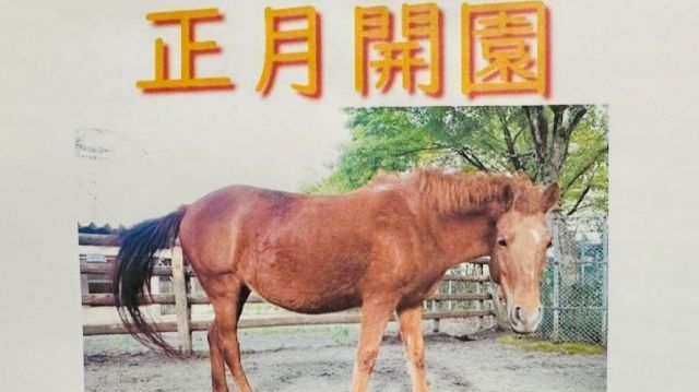 仙台市の八木山動物公園では2日。干支の引継ぎ式が行われ来園した人たちが今年の干支ウマと記念撮影を楽しみ…