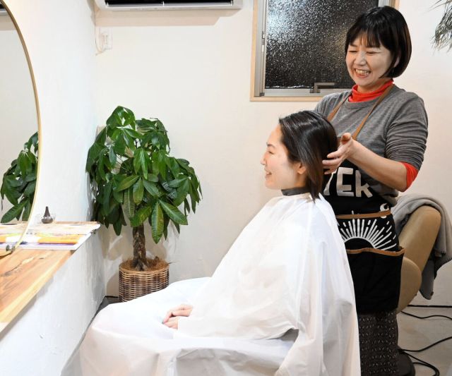 カットやヘナを中心とした女性専用のサロン。2025年9月、田園が広がる名取市西部に開店した。 ヘナは植物由来の成分で白髪部分を赤茶色に染める。化学的な染料や…