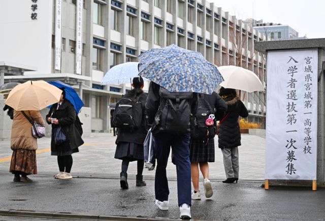 2026年度の宮城県公立高校入学者選抜(入試)が4日、全日制68校、定時制12校で始まった。 荒天が予想されたため、前日の段階で1時間繰り下げ、1科目目の国…