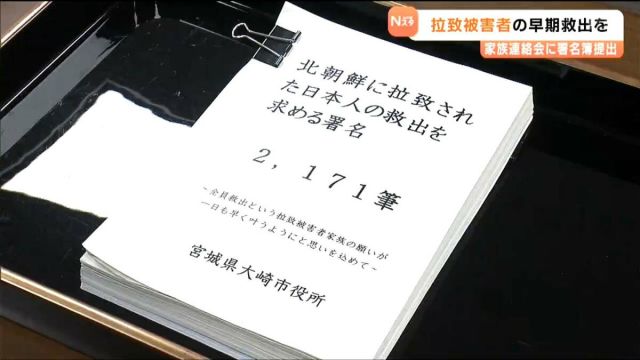 政府の責任で拉致事件の一日も早い解決を求めています。宮城県大崎市は、北朝鮮による拉致被害者の早期救出を求め4日、市民ら2000人あまりの署名簿を家族連絡会に提…