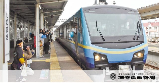 冬限定の観光列車 冬の宮城を楽しめるJR東日本の観光列車「だてSATONO」は1日、仙台―女川駅間で今年の運行が始まった。【熊谷利勝】 停車駅の一つで…