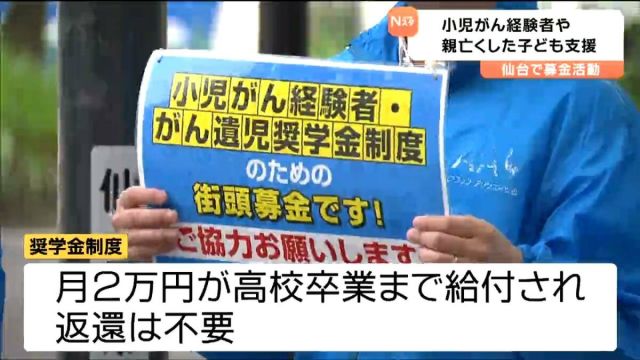 小児がんを経験したりがんで親を亡くしたりした子どもたちを支援しようと、仙台で募金活動が行われました。募金活動をしたのはアフラック生命保険の販売代理店でつくるア…
