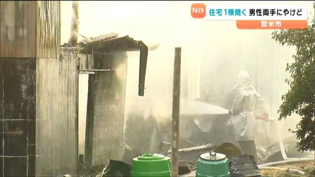 10月9日午後、宮城県登米市内で住宅1棟を焼く火事がありこの家に住む男性が両手をやけどしました。近所の人:「近所に住んでいるが爆発音で何かあったのかと思ったら…