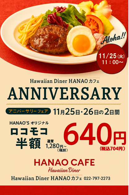 いかがお過ごしですか、nittaです。仙台市太白区のララガーデン長町3階のハワイアンダイナーHANAO'S カフェで、2025年11月25日…