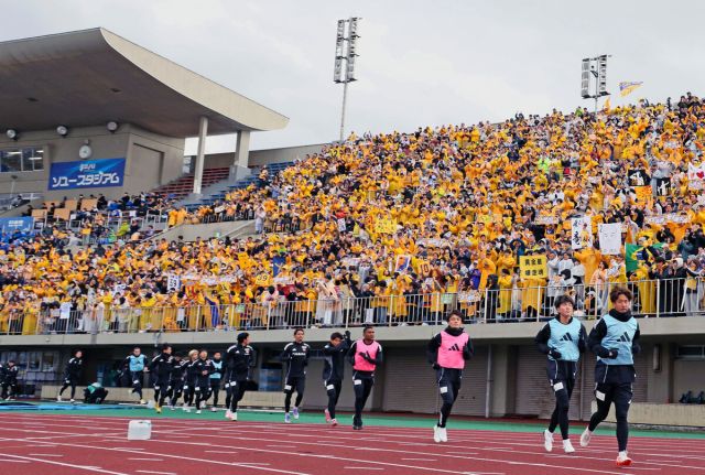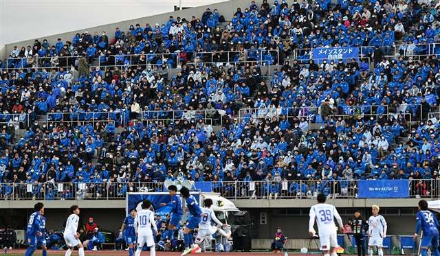 先月23日に秋田市のソユースタジアムで行われたサッカーJ2ブラウブリッツ秋田の今季ホーム最終戦となる仙台戦に来場した仙台サポーターの約6割が観戦に伴って秋田…