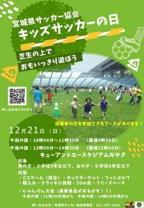12月21日に【宮城県サッカー協会 キッズサッカーの日】を開催することが決定しました!開催場所は、2002年の日韓ワールドカップや東京オリンピック、ベガルタ仙…