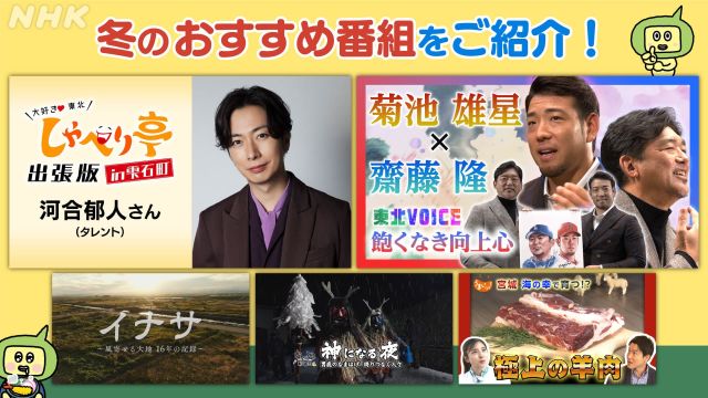 【NHK】年末年始、東北ゆかりの番組を一挙放送!「しゃべり亭」「東北VOICE」の新作に加え、秋田“なまはげ”のドキュメント、宮城の極上羊肉など、多彩なライン…