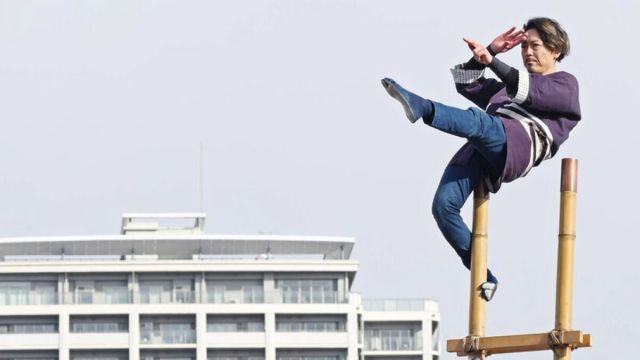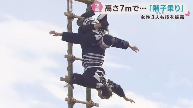 新春恒例の仙台市消防局の出初式が行われ、伝統の階子乗りが披露されました。