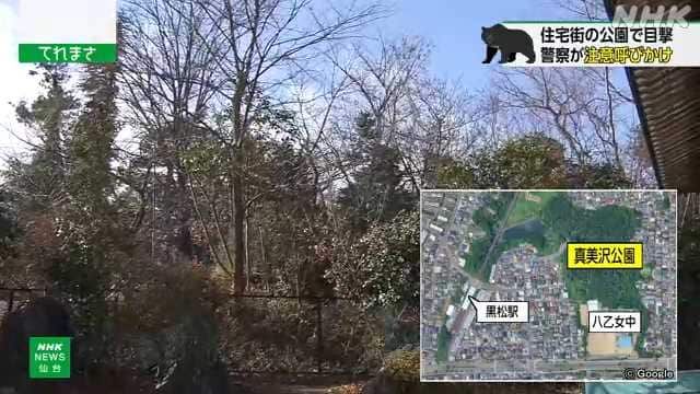 【NHK】15日明け方、仙台市泉区の住宅街の公園でクマ1頭が目撃されました。 これまでのところ、けが人や被害は確認されていませんが、警察は付近の住民などに注意…