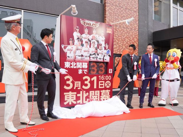 東北楽天ゴールデンイーグルスを運営する楽天野球団(仙台市宮城野区)が2月26日、JR仙台駅2階西口のペデストリアンデッキに開幕カウントダウンボードを設置した…