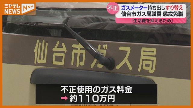 勤務する仙台市ガス局からガスメーターを無断で持ち出して、自宅のメーターと定期的に付け替えることで使用量をごまかし、合わせて120万円分以上の都市ガスを不正使用…