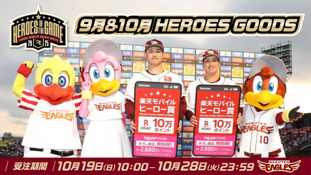 【10/19(日)】9月&10月HEROESグッズが登場!@オンラインショップ - 東北楽天ゴールデンイーグルス