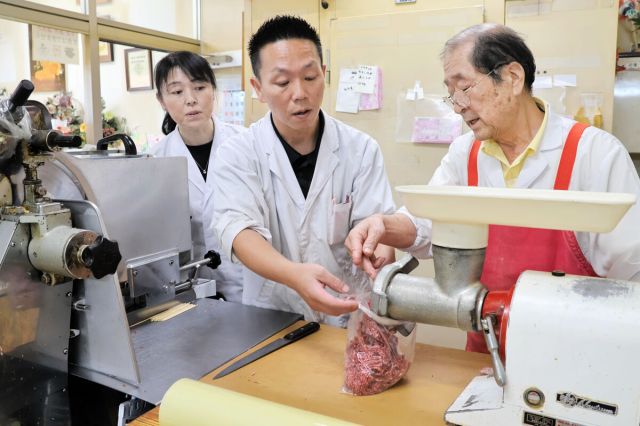 仙台牛を専門で扱う「海老沢精肉店」(仙台市太白区八木山本町1丁目)の創業者海老沢明一さん(74)は、本田正勝さん(46)、亜矢子さん(51)夫妻=宮城県多賀…