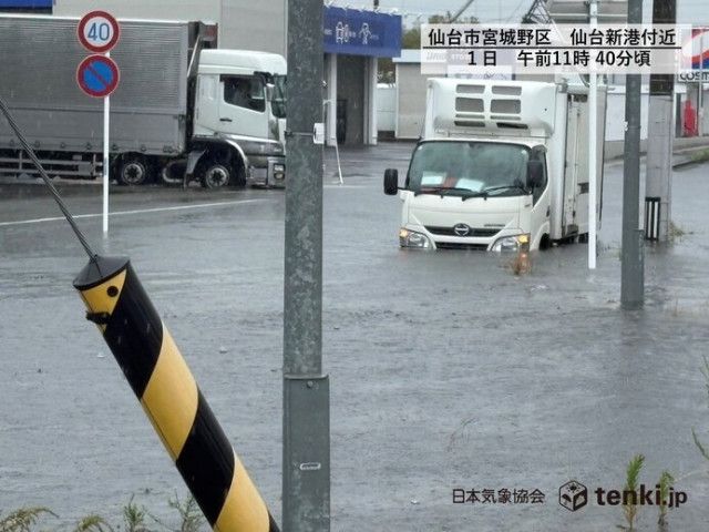 1日午前は宮城県の沿岸で局地的に雨雲が発達し、仙台新港周辺では道路冠水が発生。今夜にかけて断続的に雨が…