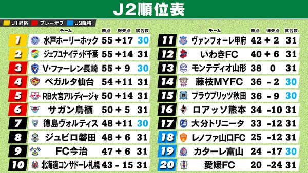 各チーム残すは8試合となっているサッカーJ2リーグ。27日(土)に第31節の7試合が行われました。