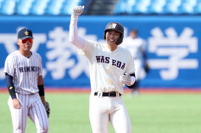 早大が立大との接戦を制し、1勝1敗とした。高橋煌稀投手(2年=仙台育英)が打席で笑みを浮かべた。1点リードの4回2死一、二塁。仙台育英の同級生である立大・田中…