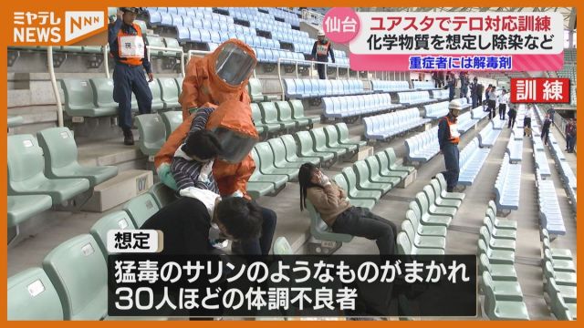 仙台市にある『ユアテックスタジアム』では、化学物質によるテロを想定した訓練が25日に行われました。