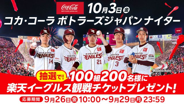 【エントリーは9/29(月)まで!】10/3(金)「コカ・コーラ ボトラーズジャパン ナイター」観戦チケットプレゼント! - 東北楽天ゴールデンイーグルス